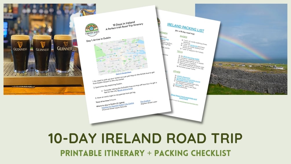 - A printable version of my 10-day Ireland road trip itinerary, complete with daily tips, Google Maps links, and suggestions for how to customize it based on your interests.